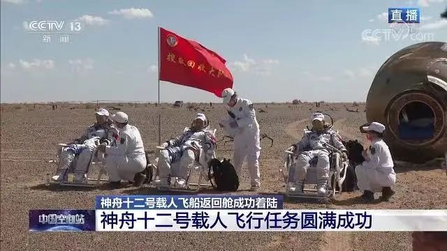 着陆后,执行飞行任务的航天员聂海胜、刘伯明、汤洪波安全顺利出舱,身体状态良好,空间站阶段首次载人飞行任务取得圆满成功。