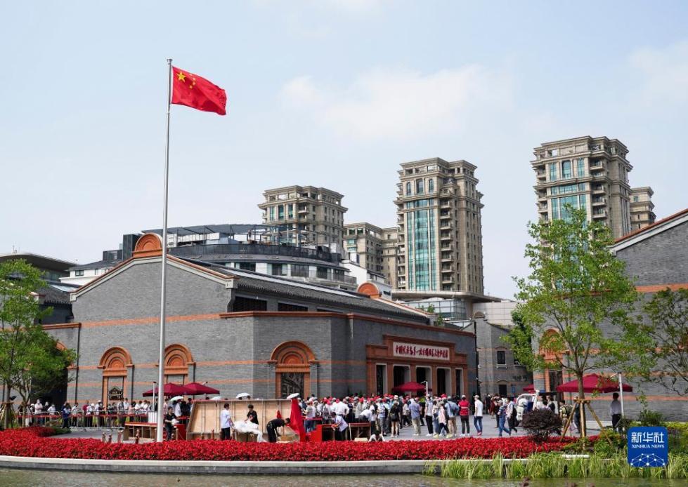 观众排队进入中共一大纪念馆参观(6月12日摄)。新华社记者 丁汀 摄