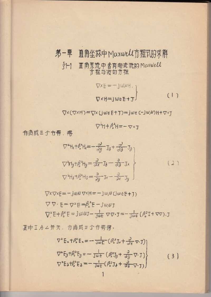 陈敬熊院士的麦克斯韦方程式直接求解法文稿。中国航天科工二院23所供图