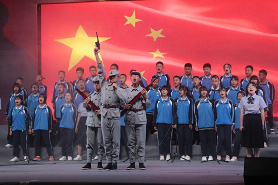 “大楼F4”介绍,他们把建党百年分成4个历史时期,每个班负责不同的历史阶段,从“五四风云”到“抗日战争”,再到“抗美援朝”“改革开放”,邀请中央戏剧学院编剧专业毕业的同学一起为学生们创作编排四段情景剧表演。第一段《五四风雨》,七八个学生扮演五四运动的进步青年;第二段《风雪长征路》,孩子们演绎长征路上的一段故事;第三段《红旗颂》,讲述1949年建国时期的历史;第四片段《高考改革》,讲述1979年高考改革第一届高考生的故事。