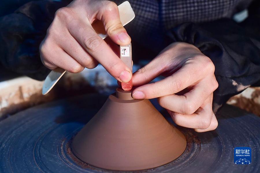 10月22日,吕继成在制作陶器。新华社记者王全超摄