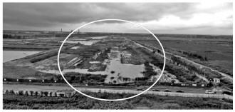 图为2021年9月督察组使用无人机拍摄发现,山东省济宁市引黄西线工程一级泵站建设项目在梁山泊国家湿地公园内大面积开挖建设沉砂池。 督察组供图