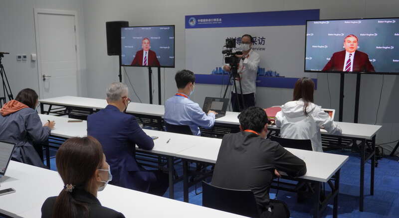 受疫情影响,西蒙尼利今年无法亲自到“四叶草”会展中心为企业站台,但在本届进博会新闻中心的安排下,他11月5日晚间成为进博会开幕首日“云采访”的嘉宾之一,借助视频连线形式,向中外记者分享贝克休斯与进博会和中国市场的不解之缘。