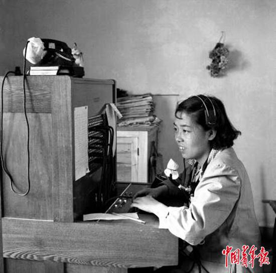 1954年5月,中国青年报社新建了电话总机室,电话员聚精会神地工作。当时报社的直通电话很少,大部分打到报社的电话都会由电话员转接到各部门分机。