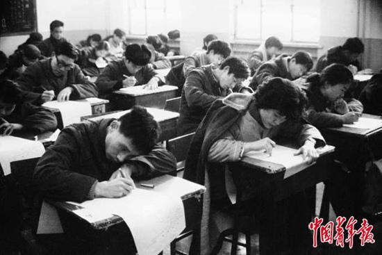 1980年12月28日,中国青年报社第一次公开招考编辑、记者,400余名报考青年参加考试,考生们正在看试卷上的注意事项。1981年到1984年,随着新闻工作的发展和人事制度的改革,报社曾两次在社会上公开招考编辑、记者,先后录取了40多名青年。