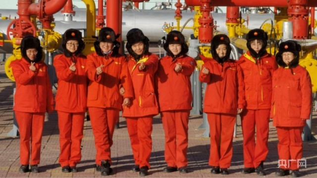 女子输气班合影(央广网记者樊永涛摄)