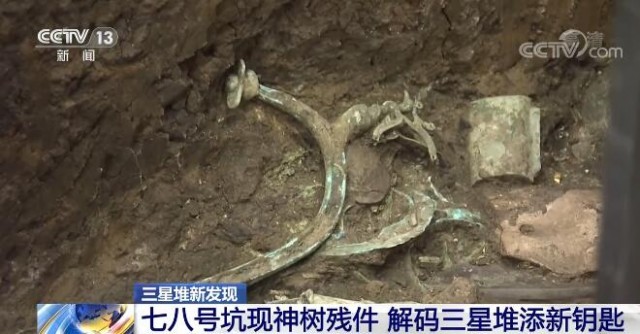 三星堆遗址祭祀区考古工作队 黎海超:神树的残件也是我们坑里面非常重要的一类东西,跟之前发现的几乎是完全一样的,所以我们目前初步猜测,应当拼起来是没有太大问题的。