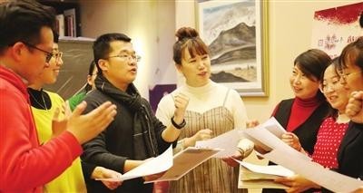 昨天,市青年宫组织青年人学唱《领航》。摄影 王倩