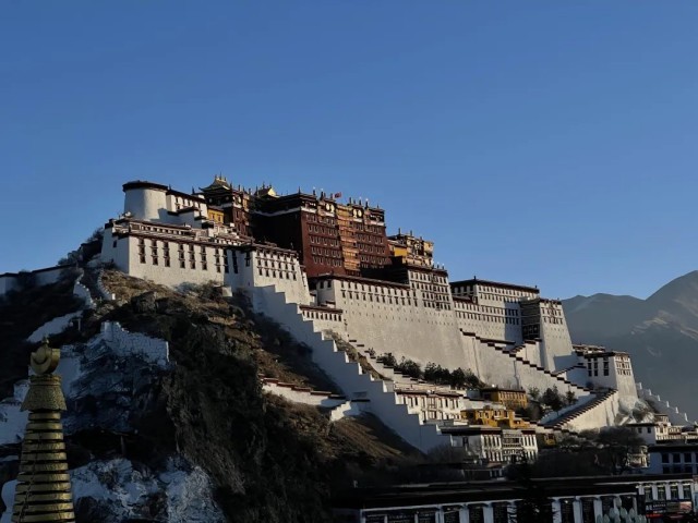 1月1日第一缕阳光照射布达拉宫。新华网 旦增努布 摄