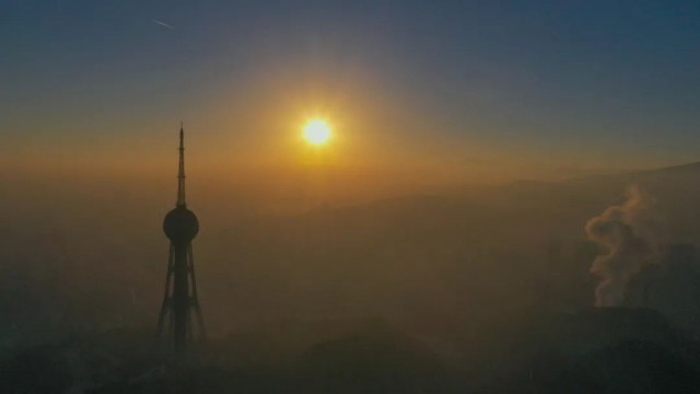 航拍沈阳2022年第一缕日出。新华网 夏铭阳 摄