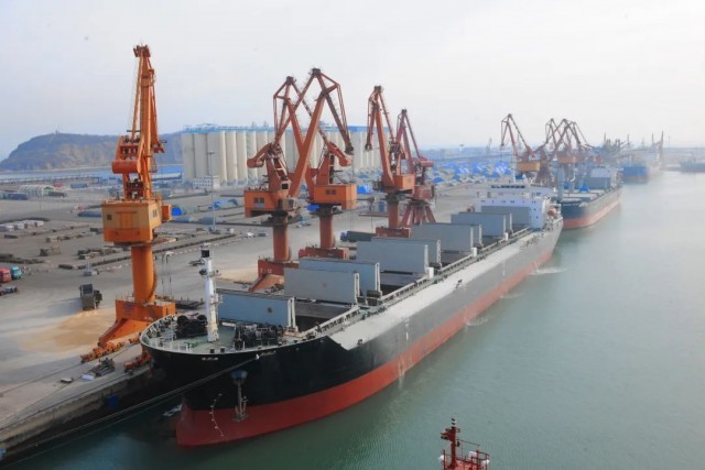 2022年1月1日,货轮“东星海泰”停靠锦州港,开始装载任务。(锦州港务集团有限公司 供图)