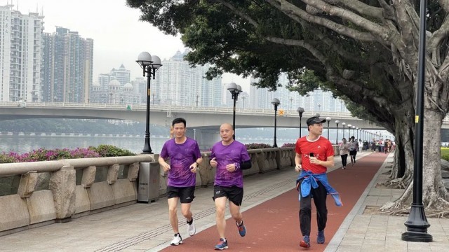 1月1日,广州二沙岛海心沙,一早很多人在跑步。黄巧珠 摄