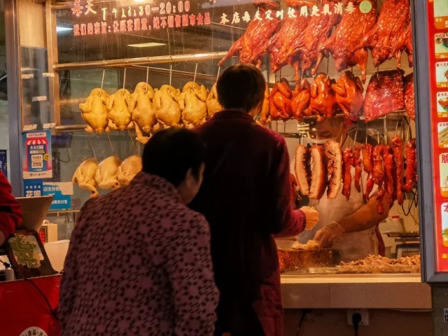 1月1日,广州大江冲街,早起的人们在排队选择购买烧腊。佘建新 摄