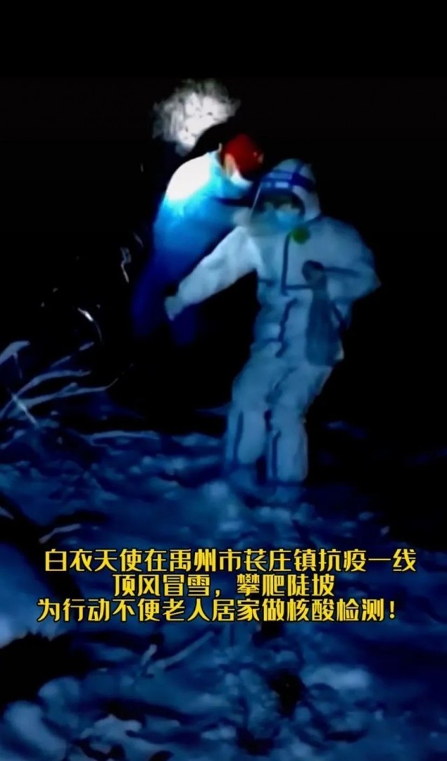 1月4日,雪满禹州,纷飞的雪花似乎在诉说这座城市的遭遇,政府立刻将梁北镇和夏都办事处调整为高风险,随即开展第二轮核酸检测,我们看到百岁老人拄拐杖雪夜排队做核酸检测;也看到在医护人员眼睫毛上落下最纯净的雪花;亦听闻白衣天使顶风雪,爬陡坡,不眠不休为高风险地区上门做核酸检测,只为坚守无遗漏全员核酸检测的原则。凛冽的寒风下,雪色暗淡,一边是肆意无情的疫情,一边是雪夜中最炙热的中国心,这澎湃的力量可度过寒冬,照夜色,破新冠,我们坚信,禹州一定行!