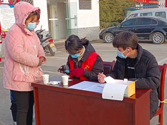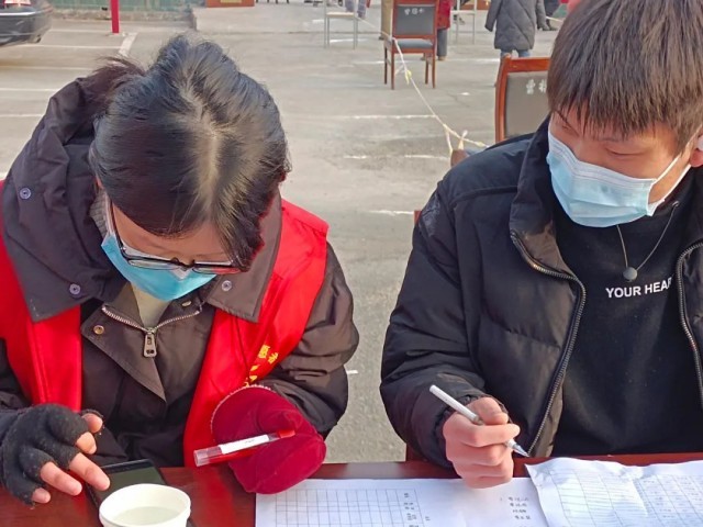 今天我们志愿者的任务是挨家挨户登记信息,核实在家人数,制定好十员混检名单表。下过雪的路并不是那么好走,雪化之后原本的土路有点泥泞,早上八点钟也没有太阳。当我们一家一户敲响门,村民们并没有被打扰得不配合,每家每户都积极拿出户口本登记。