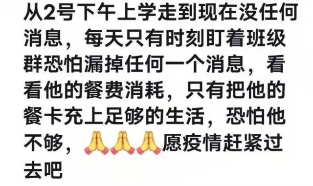 我(王艺佳)的弟弟也正是禹州高中的学子,我的妈妈每天都关注弟弟的水卡消费多少,饭卡消费多少,想要通过这些来了解在学校的弟弟今天吃的好吗?他在晚上九点多水卡消费了,应该是在洗漱吧?他今天早上饭卡没有消费,是没有好好吃饭吗?像我妈妈这样的家长不止一个,班级群里所有的家长都牵挂着在校的学生。老师发的每一个视频,爸爸妈妈能一遍又一遍地看个不停,看着看着眼睛湿润了,边看边说“孩子在学校没事就好,平安就好。”我们相信全体禹州人民共行,一定能战胜疫情。