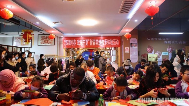1月26日,在2022年新春佳节到来之际,来自世界各地的在宁留学生来到了艺盟文创伏兆娥剪纸研学基地,体验中国传统年味,切身感受剪纸的魅力。