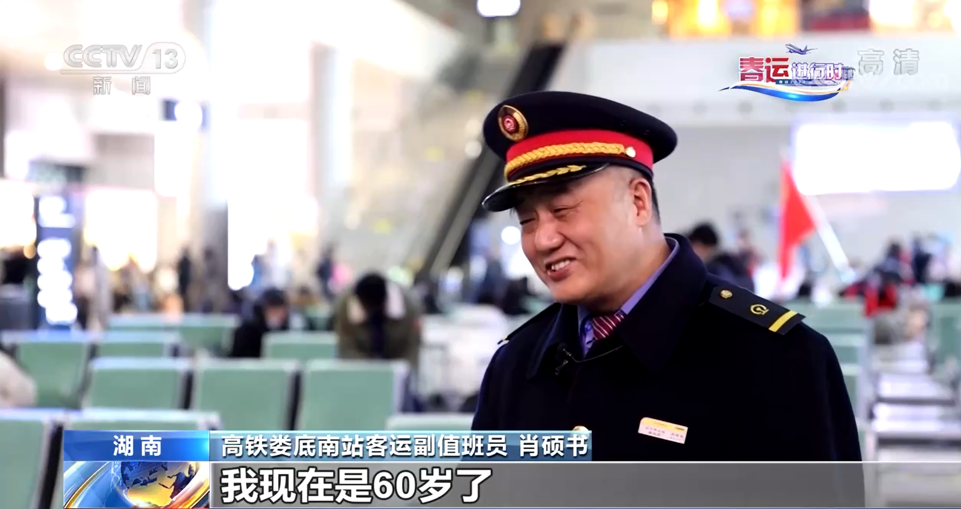 高铁娄底南站客运副值班员 肖硕书:我现在是60岁了 但是我感觉再干几年没问题。