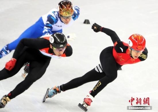 资料图:在平昌冬奥会短道速滑男子500米预赛中,中国选手韩天宇顺利晋级。图为韩天宇在比赛中。 中新社记者 宋吉河 摄