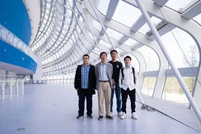 张信荣团队在国家速滑馆工作照。北京大学供图
