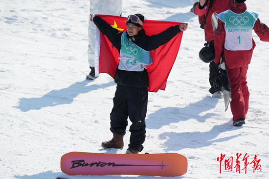 这枚单板男子大跳台金牌是中国代表团在本届冬奥会获得的第6枚金牌,“创历史最佳”的参赛目标,也在这一刻提前实现——对比4年前平昌冬奥会直到收官日武大靖才抢下1枚弥足珍贵的金牌,中国冰雪运动蕴含的巨大潜力在主场得到证明。