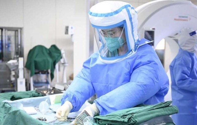 闭环期间,崇礼院区手术室里的一位护士正在工作。崇礼院区供图