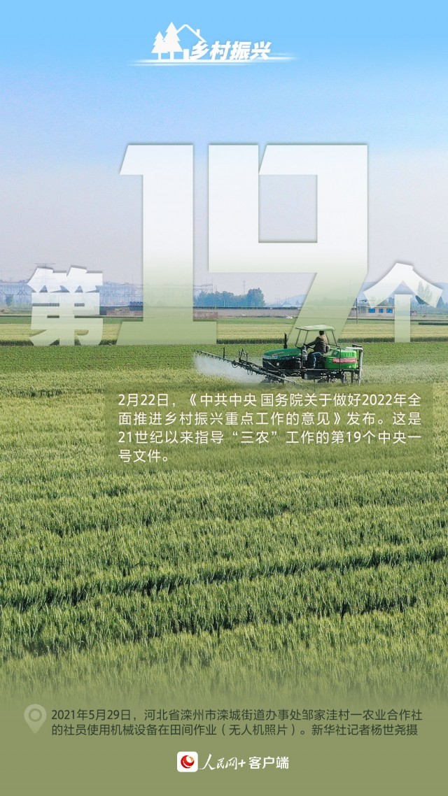 乡村振兴为农民而兴,乡村建设为农民而建。2月22日,《中共中央国务院关于做好2022年全面推进乡村振兴重点工作的意见》发布,这是21世纪以来指导“三农”工作的第19个中央一号文件。过去一年乡村振兴成果如何看?新的一年乡村振兴怎么干?看这儿心中有数!