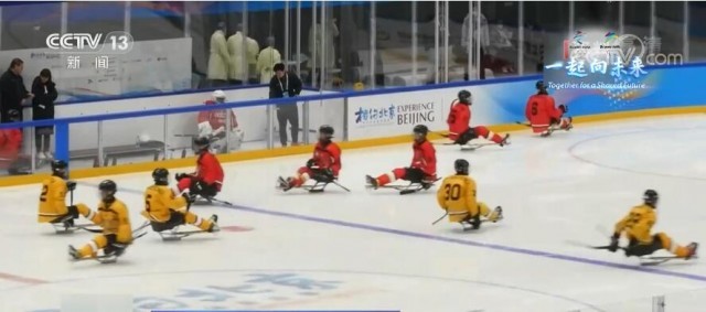 国家体育馆场馆运行 秘书长 齐靓:(冰面要从)3.5厘米差不多加到4.5到5厘米。为什么要加厚?因为残奥运动员是滑着冰橇(比赛),冰橇的一头是击球的,另外一头是尖,是辅助他来滑动来戳冰的,这个(冰橇的)尖比较尖,所以如果冰面比较薄的话,容易戳着冰的底漆。