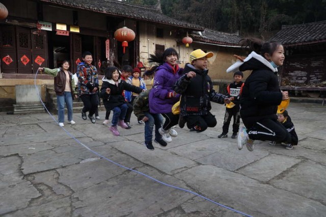 孩子们在吕家大院跳绳。中青报·中青网记者 王鑫昕/摄