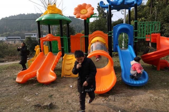 堂屋被改造成了一间教室,吕歆妍从一个停办的村小那里买来了桌椅,供孩子们读书、做作业。院外的一片空地上,还有一套滑梯,那是更小的孩子的乐园。