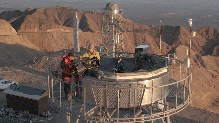 冷湖天文观测基地选址团队人员调试观测设备。(受访者供图)