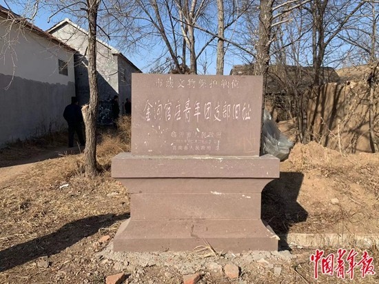 走进山东省莒南县筵宾镇金沟官庄村,新民主主义青年团山东省第一个团支部纪念碑映入眼帘。不远处,是当年成立团支部的旧址——农户董考家。