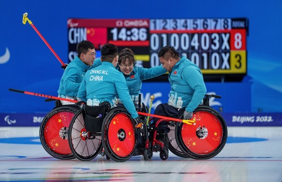 2022北京冬残奥会轮椅冰壶决赛,中国队8∶3战胜瑞典队,成功卫冕。