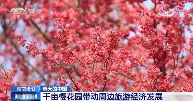 春光明媚,莺飞草长。您现在看到的是湖南桂阳县的千亩樱花园,在煦暖的春风里,3万余株如烟似霞的樱花正渐次绽放。从高空俯瞰,一片红粉为主、白绿点缀的烂漫花海蔚为壮观。