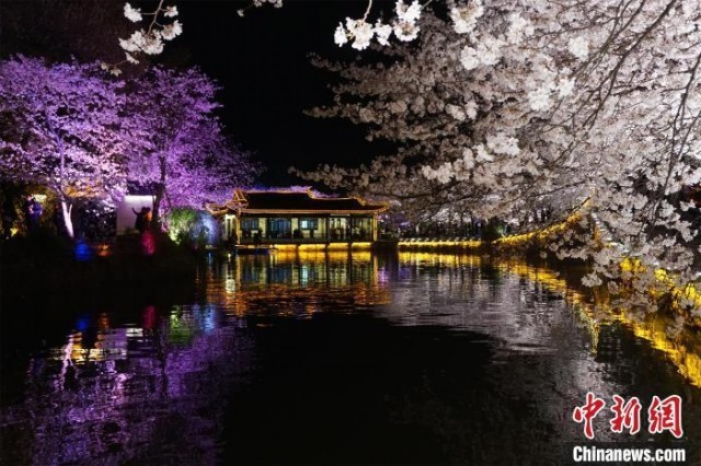 无锡太湖鼋头渚夜樱。 孙权 摄