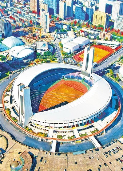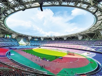杭州市黄龙体育中心从2019年12月起实施场馆全面提升改造,系集体育比赛、健身娱乐、餐饮住宿等于一体的多功能场所,是2022年杭州亚运会的比赛场地之一。龙 巍摄(中经视觉)
