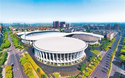 ▲杭州市拱墅区大运河亚运公园体育场馆。该场馆建筑造型灵感来自良渚文化的玉琮,为杭州亚运会乒乓球、霹雳舞的比赛场馆。李 忠摄(中经视觉)