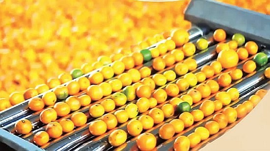 湖北土老憨生态农业集团生产流水线上的柑橘。 郑青摄