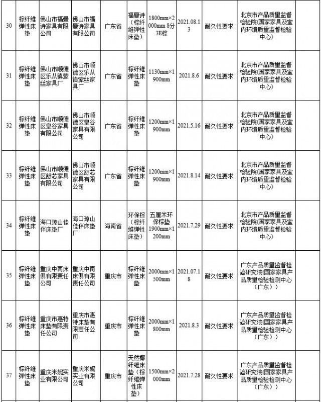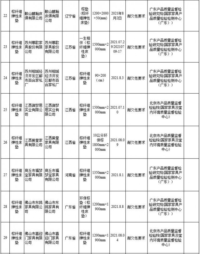 棕纤维弹性床垫抽查不合格率为28.4%。本次抽查了18个省(区、市)94家企业生产的95批次产品,发现27批次产品不合格,抽查不合格率为28.4%,较上次抽查上升7.3个百分点。该产品近3年国家监督抽查不合格率分别为14.4%、21.1%、28.4%。