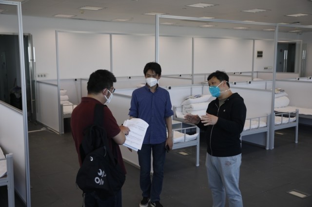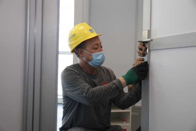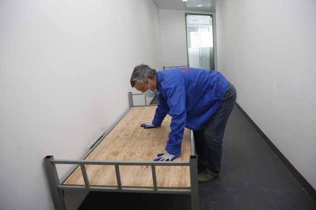 4月10日,现场施工总人数达170人,全面开启加速模式,上午完成5个楼层隔离仓的隔断、机电等安装工作,并进行了床单被褥铺装,局部已达到入住标准。4月11日下午,现场一片热火朝天,正进行清扫、保洁、补缺等最后的冲刺,包括黄浦区有关方面、云南省援沪医疗队的医护代表,已拿着图纸在现场就三区两通道等细节,提出符合疫情防控需求的专业意见。所有人,都在和时间赛跑!