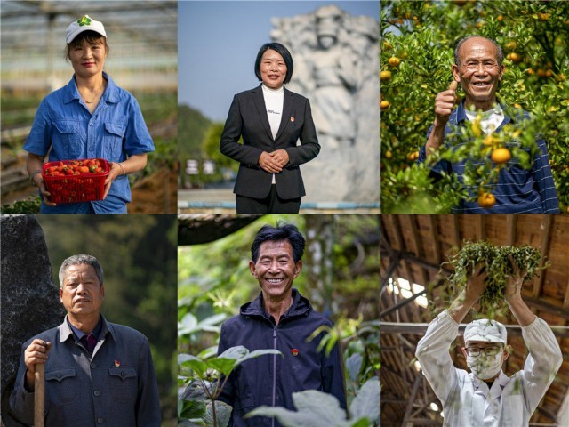 云南省文山壮族苗族自治州西畴县奋战在乡村振兴新征程上的平凡身影,他们分别是李华明(左下)、刘超仁(右上)、程敦儒(中下)、谢成芬(中上)、张贵相(左上)、杜岑(右下)(拼版照片)。新华社记者 江文耀 摄