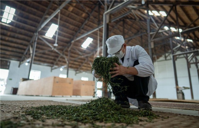 在云南西畴县,“90后”创业者杜岑在制茶(3月27日摄)。新华社记者 江文耀 摄