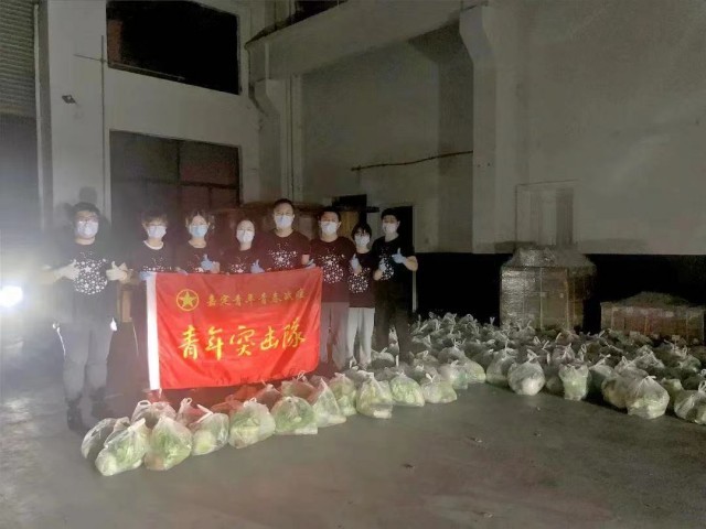 把物资带回来后,分装工作也不容小觑。第一批物资是2000份的蔬菜,每份在10斤左右,为了包装分拣,队友们往往累到“直不起腰”。在4月11日晚上,第一批物资就连夜经由嘉定团区委配送到青少年手中。