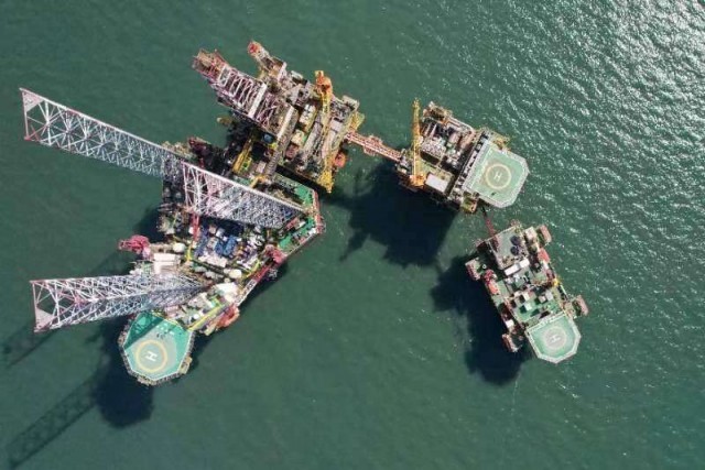 中国青年报客户端天津4月23日(中青报·中青网记者 胡春艳)4月23日,世界首个海上大规模超稠油热采开发油田——中国海油旅大5-2北油田一期项目顺利投产。该模式的成功应用,将撬动渤海湾盆地上亿吨宛如“黑琥珀”一般的特超稠油资源的开发。