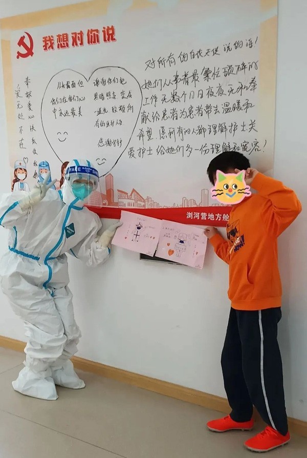 “低龄患儿正是需要家人陪伴的时候,陌生的环境会让他们有恐惧的心理,独立的房间可以让他们有相对安静的空间、充足的睡眠。大一点的孩子,还需要上网课,亲子舱能给他们更好的学习环境。”浏岛方舱医院护士长俞林桂介绍,考虑到患儿的特殊需求,亲子舱提供独立的房间,环境相对安静。