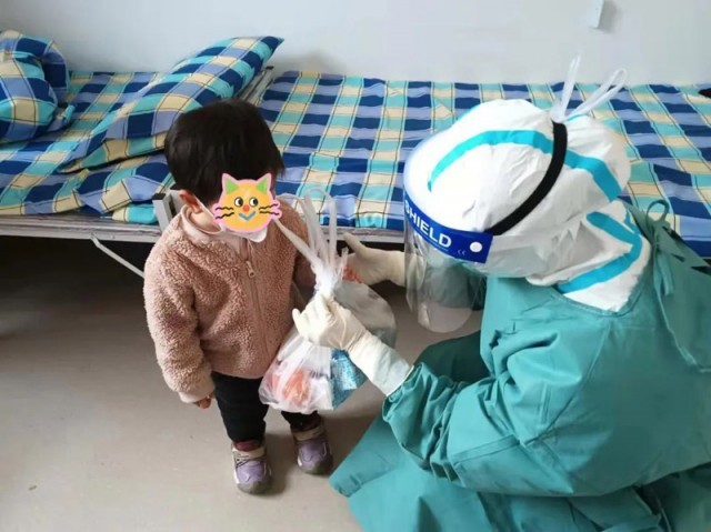这一幕就发生在上海嘉定浏岛方舱亲子舱里。为了缓解患儿紧张、焦虑的情绪,亲子舱里的“大白”会陪小朋友做游戏、唱歌,哄他们开心,还会拿出零食分给小朋友们吃。有的“大白”甚至变身理发师,给小朋友理发。