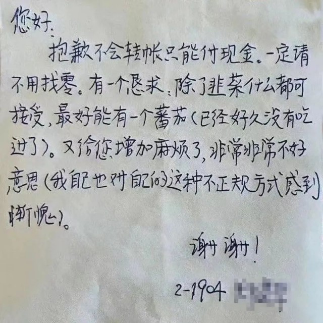 疫情期间一位不会用手机买东西付款的老年人给邻居写了一封求助信,老人最后收到了小区邻居送的番茄。