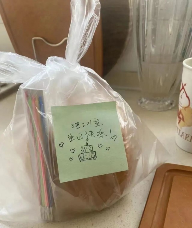 小区封闭,一个女孩说过生日吃不上蛋糕,邻居做了一个蛋糕送给她。