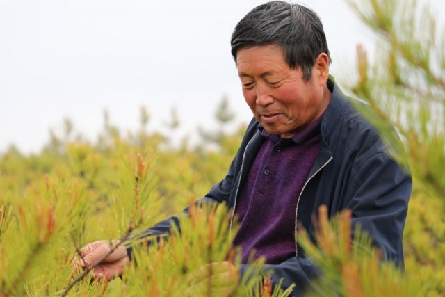 1999年起,闫志雄带领村民背着树苗、?头和干粮,天不亮就出门,栽树到天黑。“当时心里憋着股劲,下决心改变旧面貌、苦日子,一干就是20年。”闫志雄说。