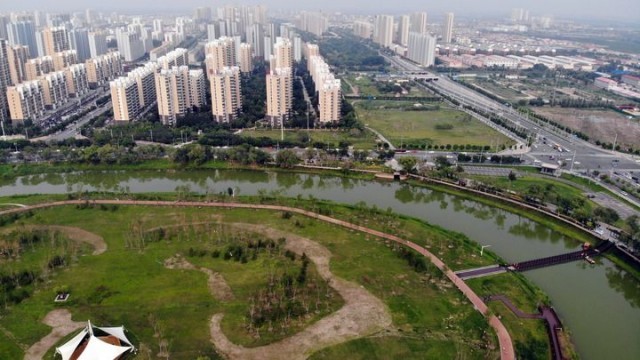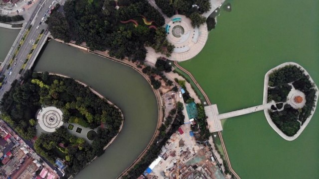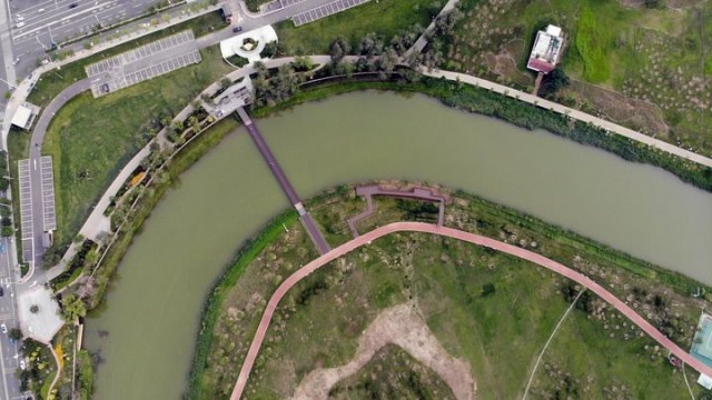 大运河在沧州市区行至城区南部红孩口河湾处的南北直线最短距离仅160米,运河实长却近2000米,形成一处独特的“Ω”形大弯。4年前,这段河道里杂草丛生,坟冢座座,苗圃、鸡窝等私搭乱建非常扎眼。市民陈立新是大运河畔的老家旧户,他说:“过去,河堤路较窄,周边分布着居民区、菜地、饭店、集市,环境脏乱差,到河边遛弯这样的事,根本没人想。”